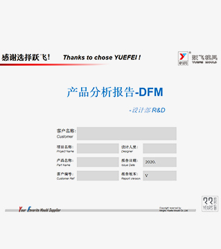 DFM analysis Perform feasibility analysis of customer products through experience analysis and software simulation. Communicate with customers on information including gate location, basic mold structure, parting line, cooling distribution, surface requirements and product details. Optimize the possible problems in the mold production process in advance.