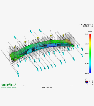 Use CAE analysis software to analyze 20 simulation data including flow, pressure, warpage and cooling. According to the analysis results, the mold design is optimized. 20 different analyses, such as melt flow, pressure, warpage, cooling effect could be accomplished within 2 weeks, based on Moldflow 2012.